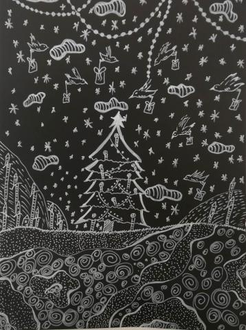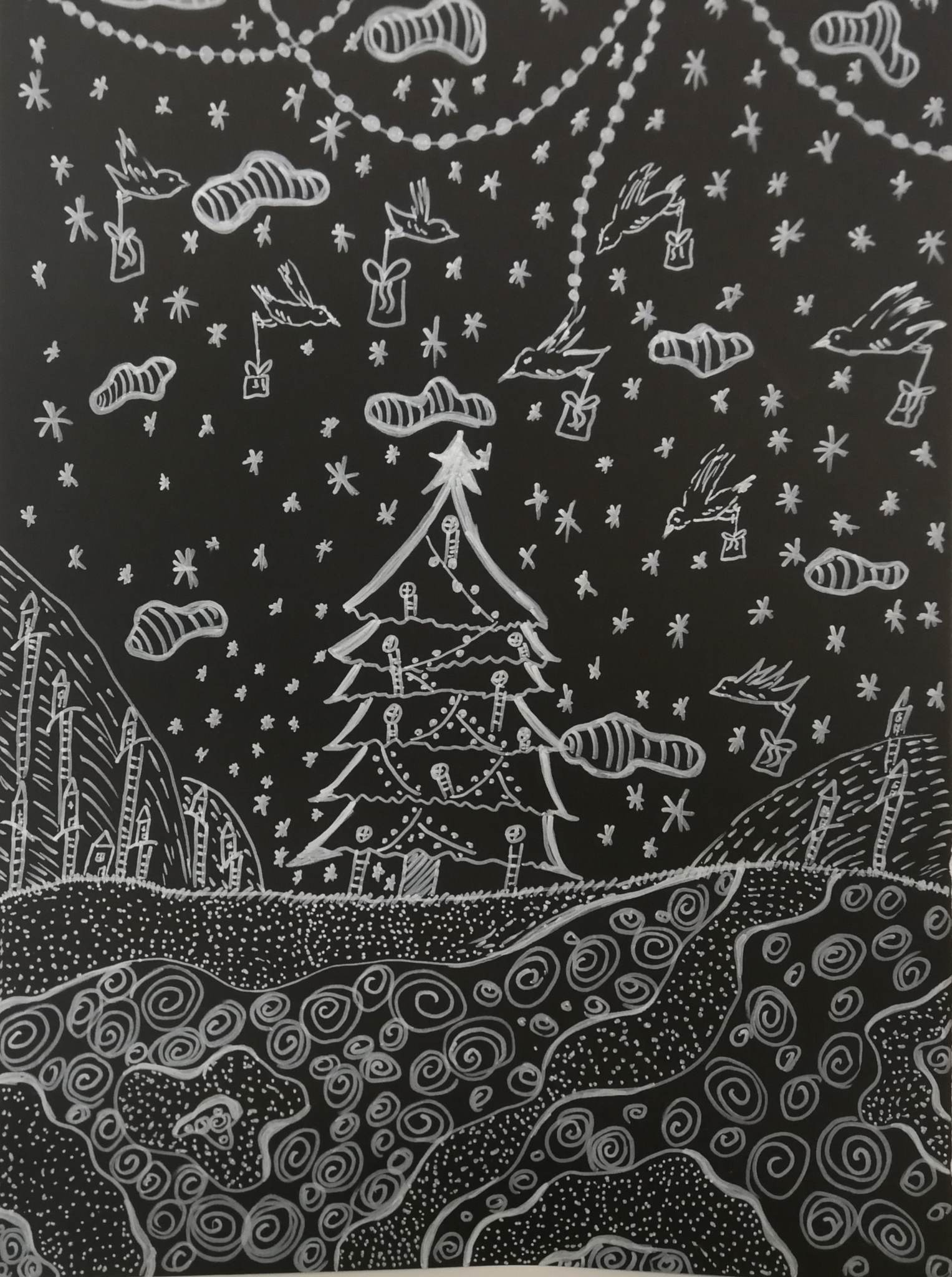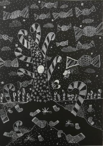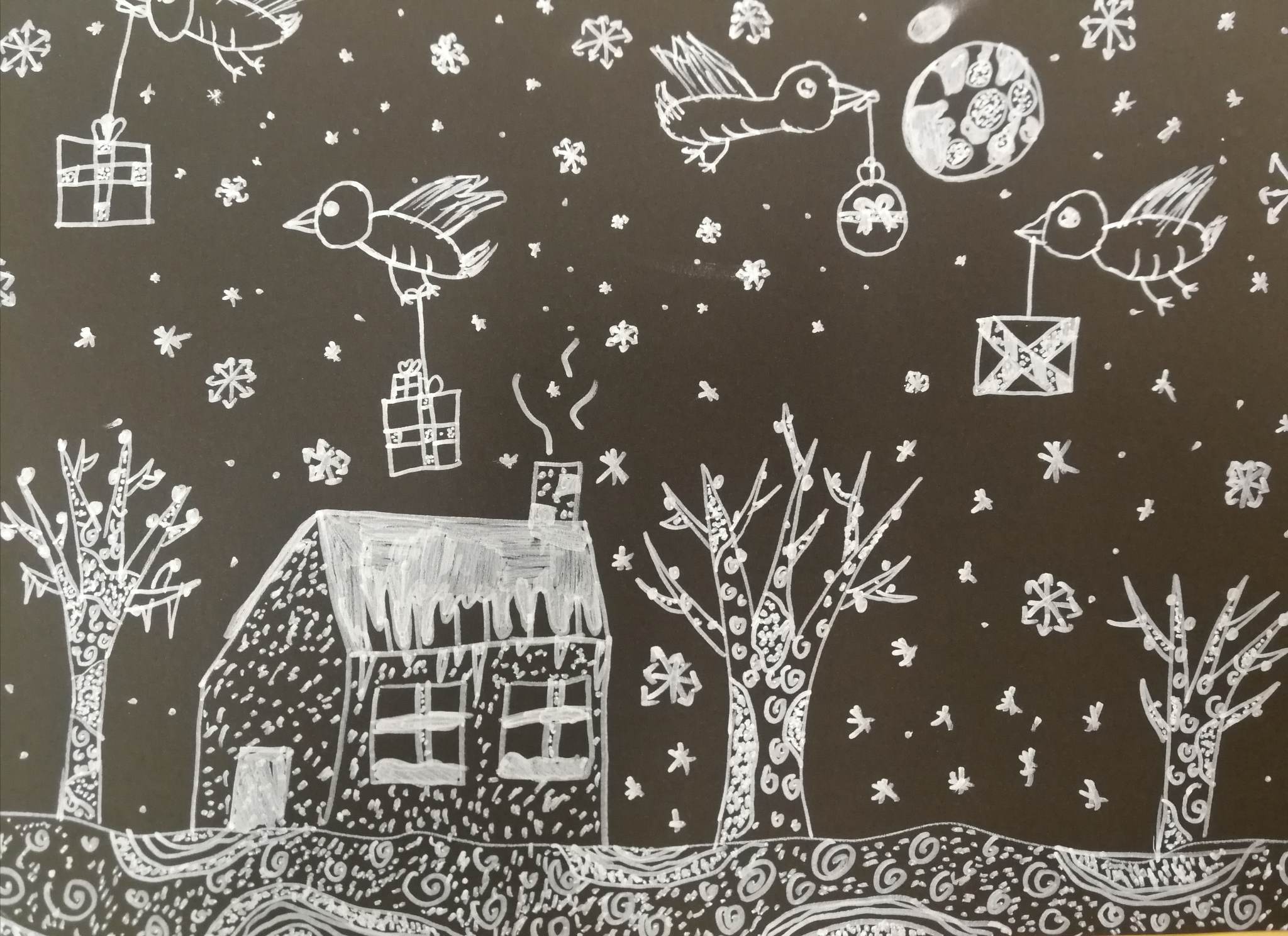 ŽIEMOS MIRGĖJIMAS. Smagūs pradinio kurso 6 grupės mokinukų piešiniai. Mokytoja Daina Dambrauskienė.
