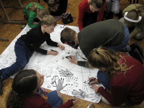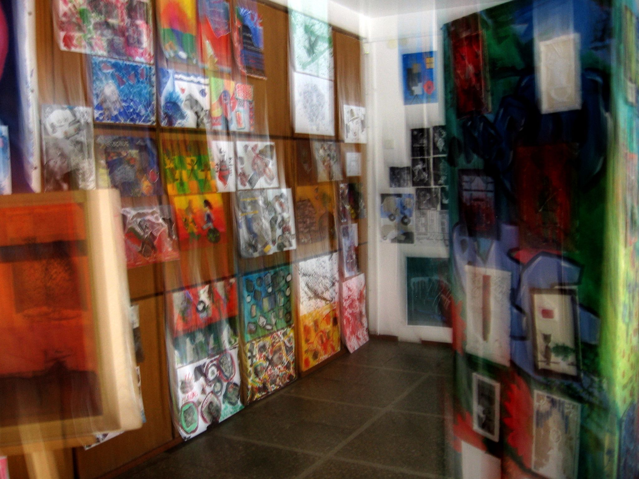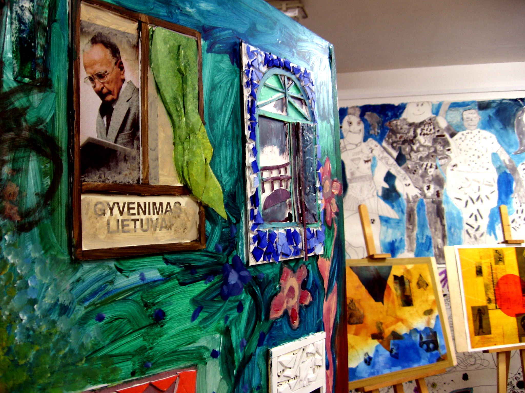 Kūrybinė laboratorija „Sąveika“- tai koliažo laboratorija, kurioje ieškojome jungčių tarp skirtingų žanrų, technikų, medžiagų, temų, amžiaus grupių, mokytojų-mokinių.